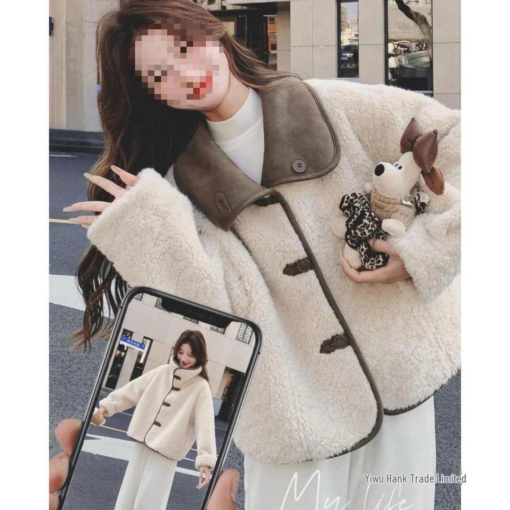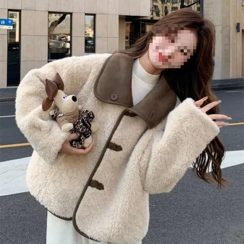 Двустороннее пальто из замши и овчины с мехом для женщин - Корейский зимний стиль