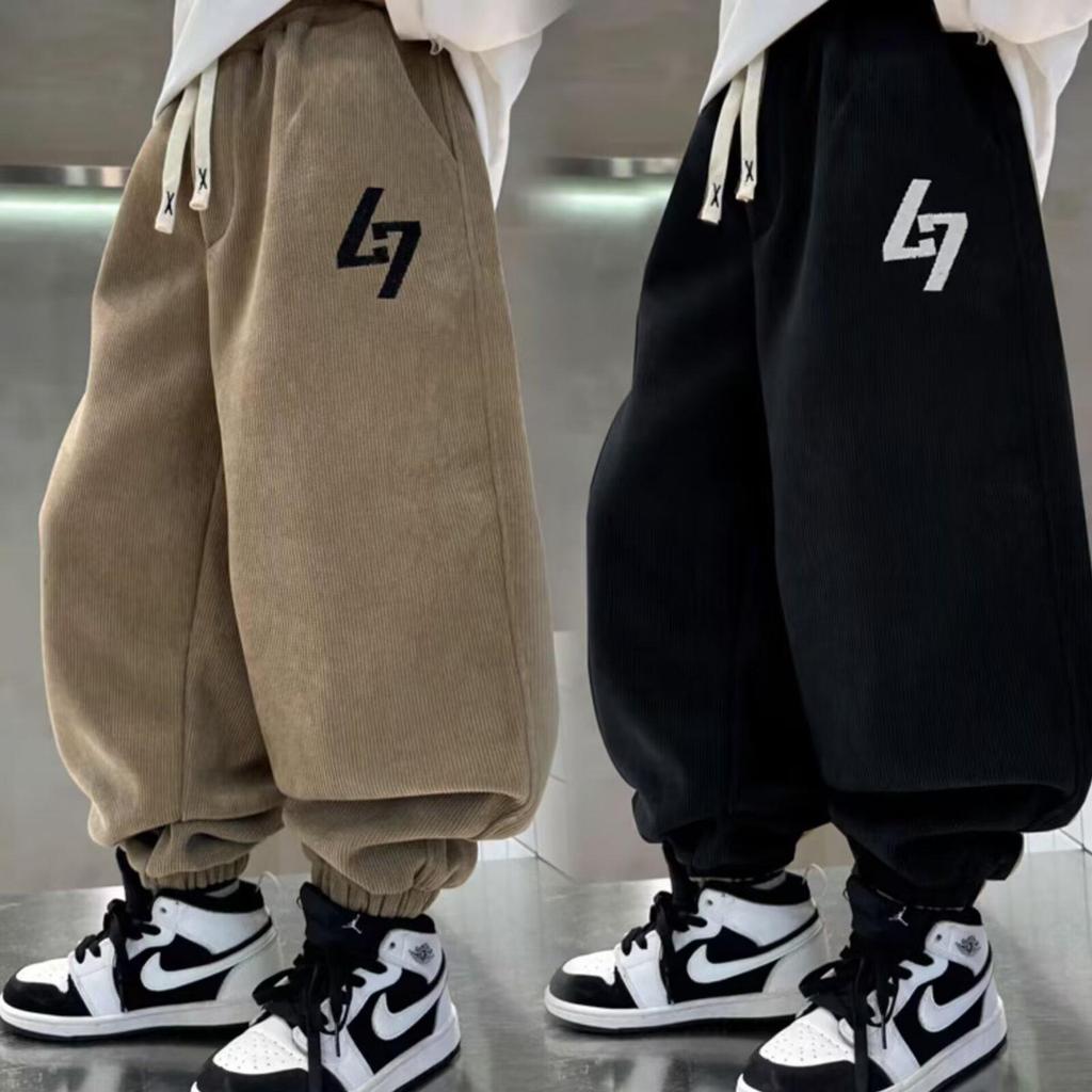 Спортивные брюки для мальчиков на флисовой подкладке - Коллекция весна/осень 2025: Толстые, длинные спортивные штаны для детей