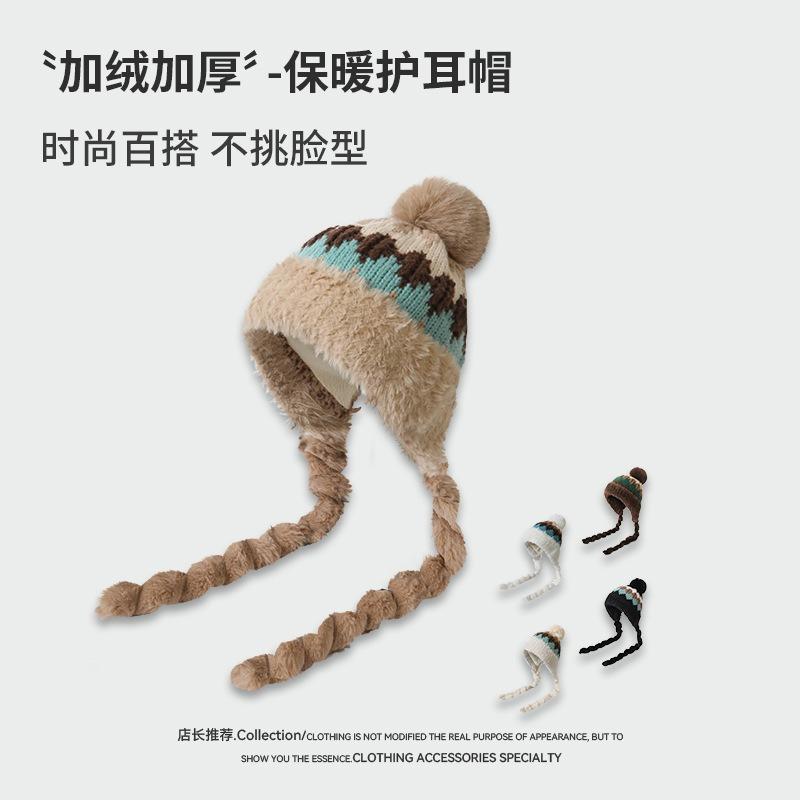 Новая плюшевая шапка-пуловер в ретро цветовой гамме, холодостойкая и теплая шапка, женская зимняя защита ушей, уличная лыжная плюшевая шапка