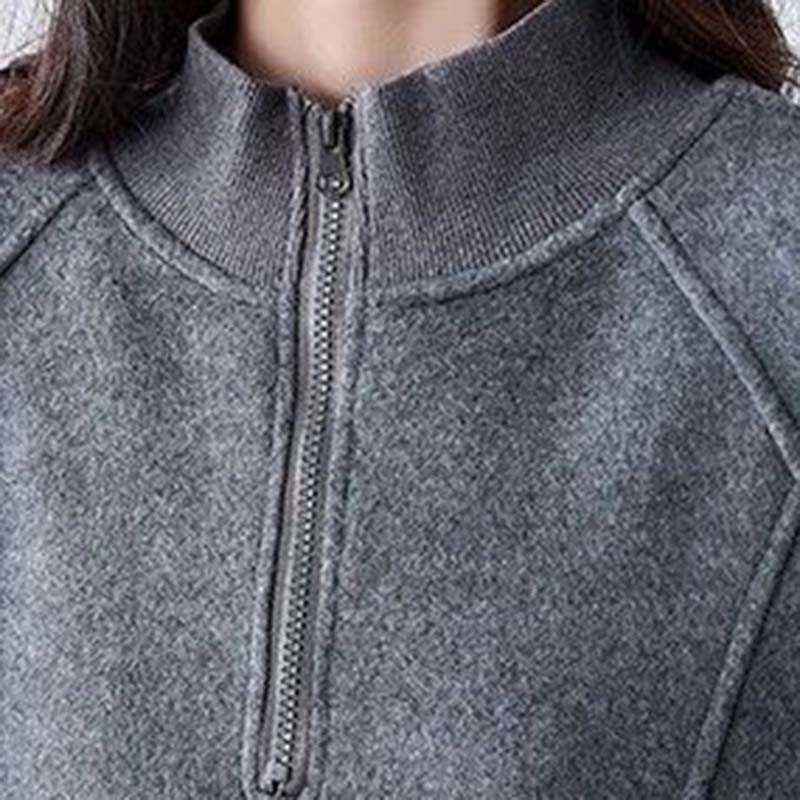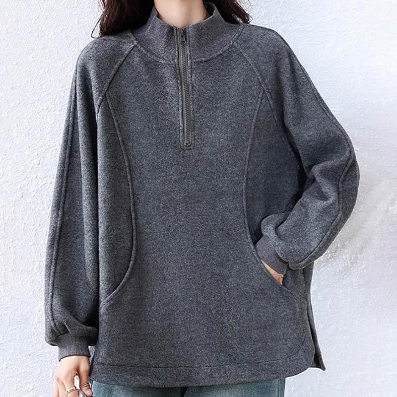 Женский свитшот Хлопок Оверсайз Полуоткрытый воротник Флис Утепленный Свободный Круглый вырез Повседневный Пуловер Топ с длинным рукавом Свитшот