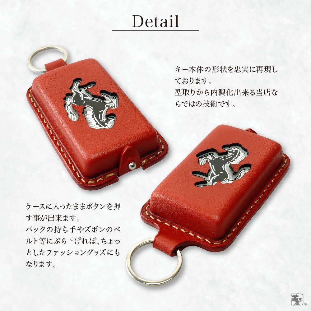 Этот чехол для смарт-ключа, совместимый с Ferrari, имеет окошко, через которое виден логотип с гарцующей лошадью.. Изготовлен из роскошной кожи, защищает ваш ключ от царапин. Он также поставляется с кольцом для ключей, поэтому вы можете прикрепить его к сумке или петле для ремня.. Это привлекательный чехол для ключей, сочетающий в себе моду и функциональность.. Он сделан полностью собственными силами в кожевенной чайной в Нагое, где каждое изделие тщательно изготавливается.. Кожа, как и сам автомобиль, поставляется из Италии.