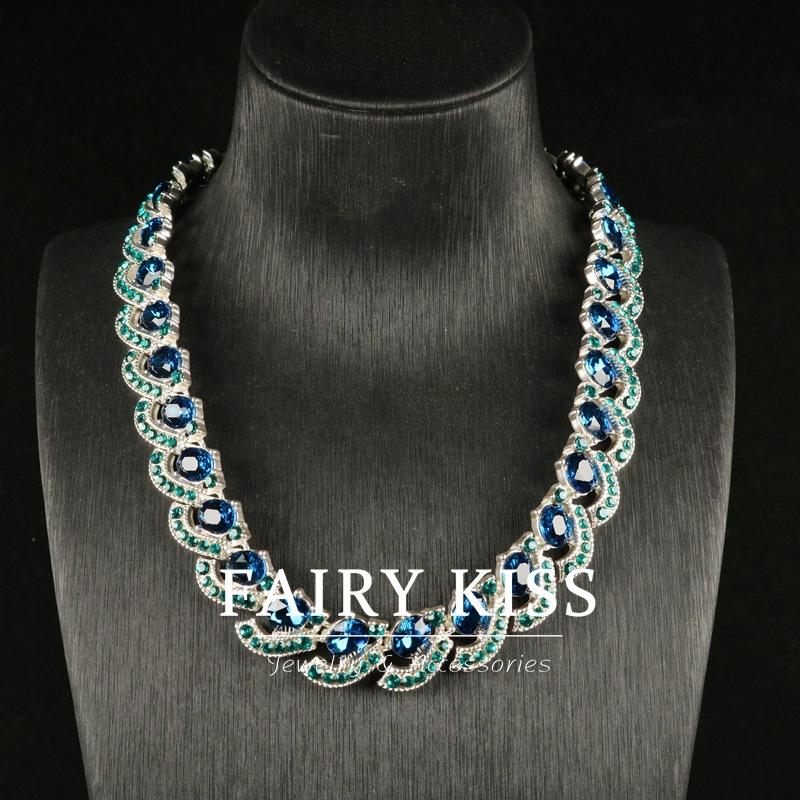 В стиле ретро Тяжелая промышленность Инкрустированный малахитово-зеленым стразом Ледяной кристалл Сапфир Модный набор ожерелья Женские универсальные серьги