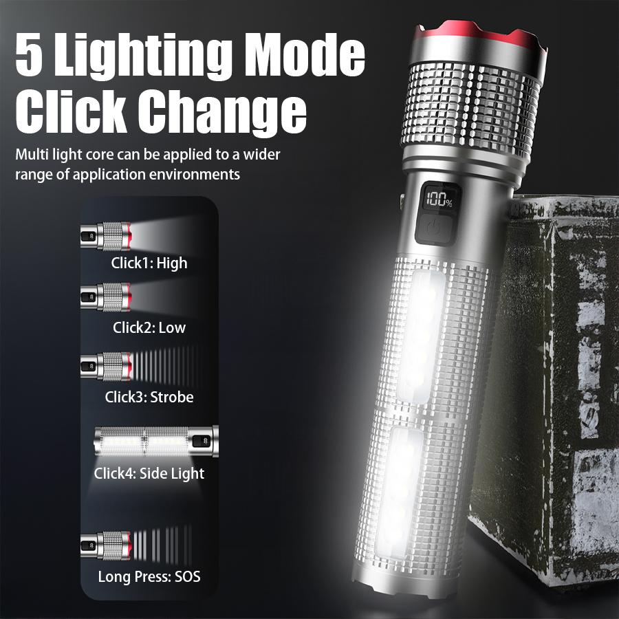 5000 MAH Powerful LED Flashlight Rechargeable Lamp Side Light Waterproof Tactical Lantern Handheld Torch Outdoor Camping Hiking