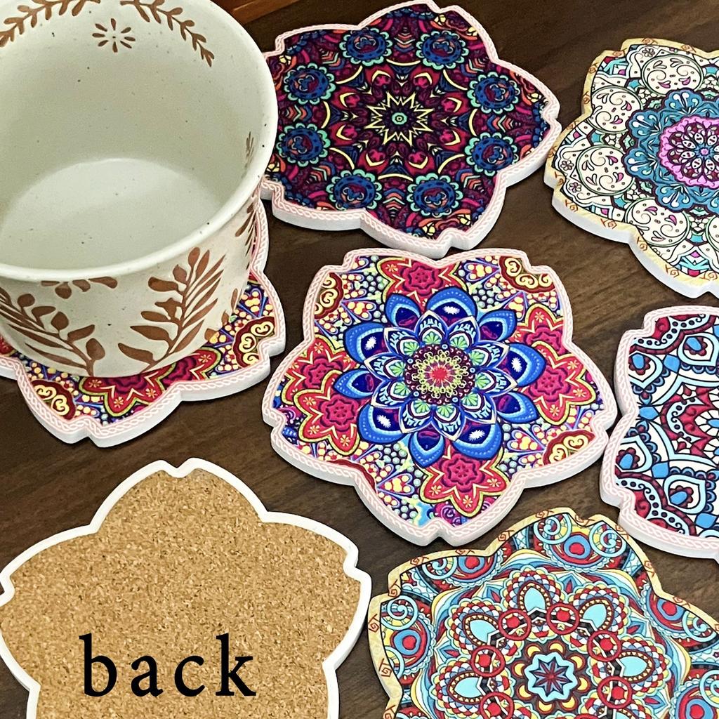 Керамические подставки под стаканы с пробковой основой в стиле мандалы, водонепроницаемые шикарные коврики в форме цветка для домашнего декора обеденных столов и кофе