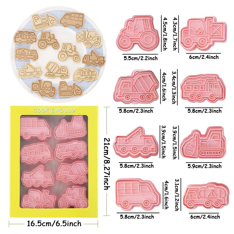 8 шт./набор Формочки для печенья в виде инженерных машин Пластиковые 3D Мультяшные Пресс-формы для печенья Штампы для печенья Кухонная выпечка Кондитерские принадлежности