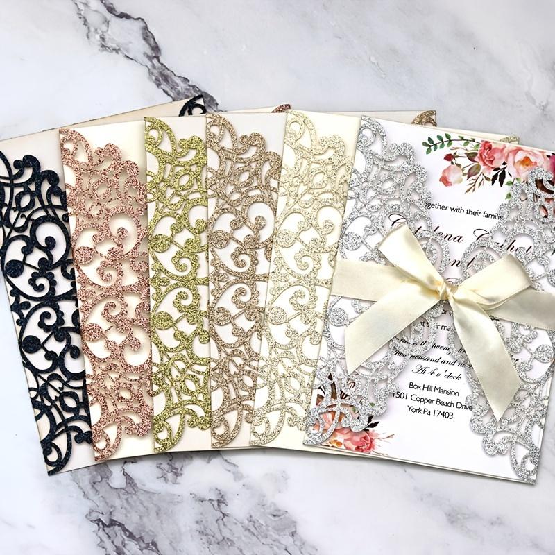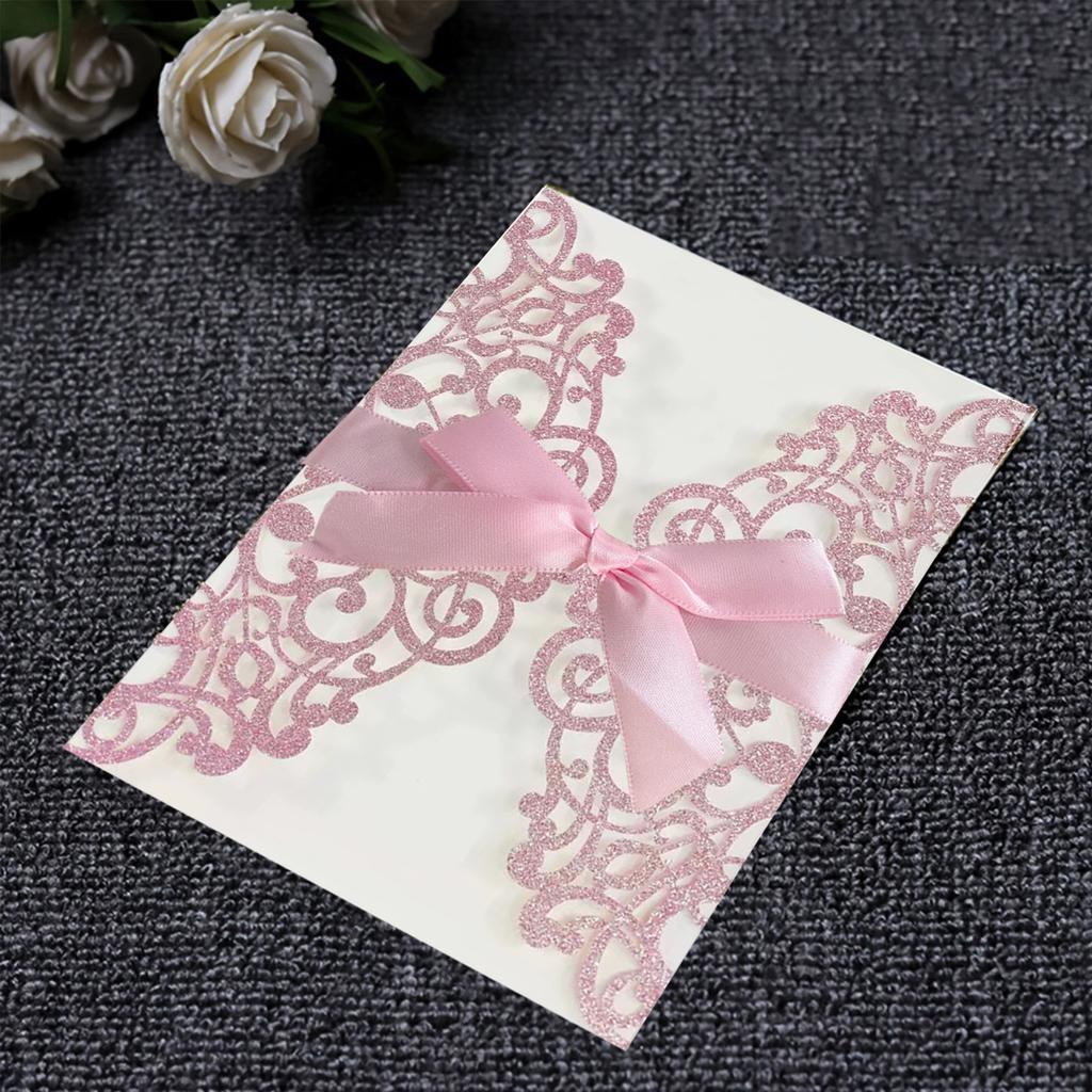 10 шт. Блестящая пригласительная открытка с лентой Поздравительные открытки Свадьба Маридж Приглашение Вечеринка Крещение Бар-мицва Вечеринка Украшение