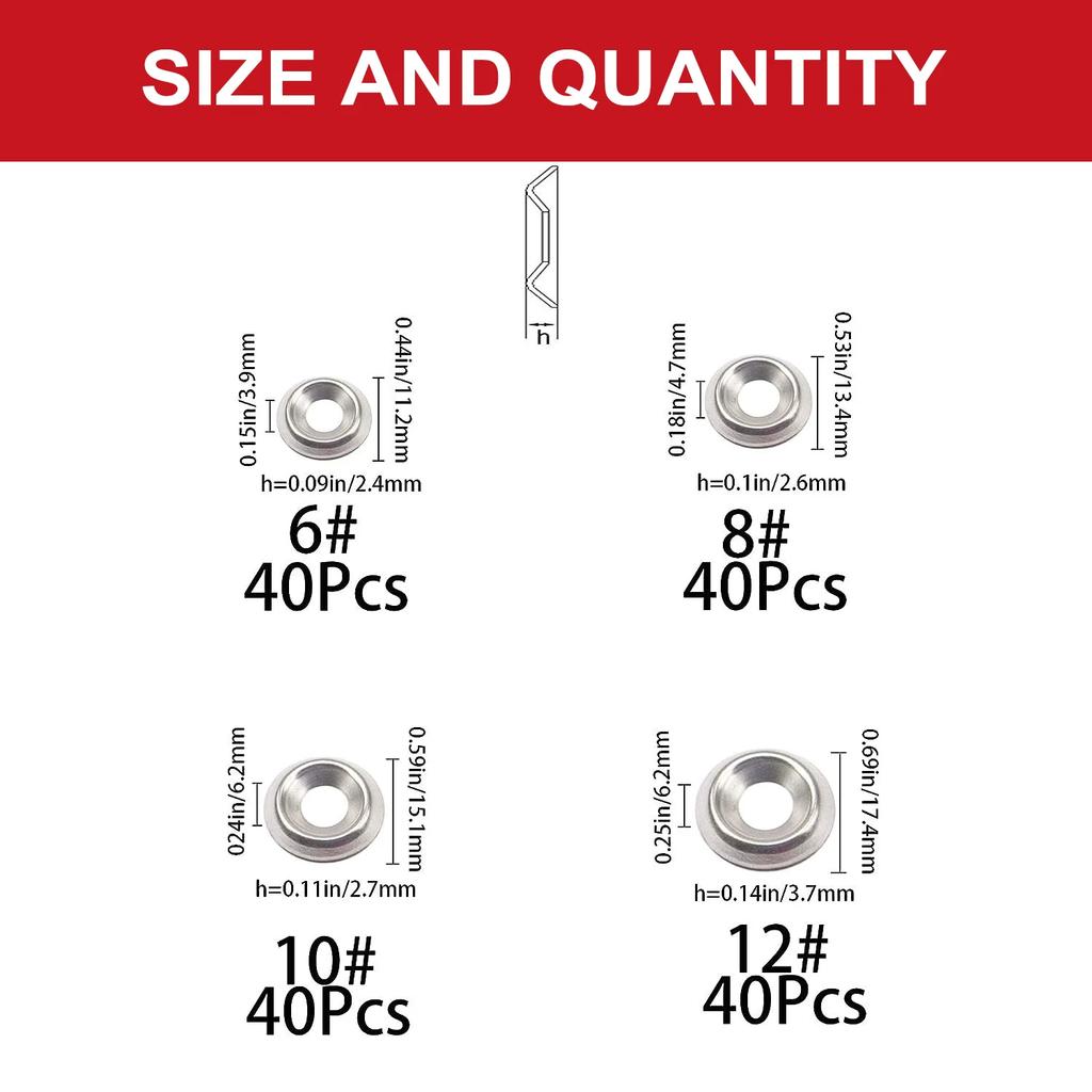 VKKM - #6/# 8/# 10/# 12 Conical solid countersunk gasket, concave convex conical gasket, 160/320 pieces of 304 stainless steel — купить товар онлайн с бесплатной доставкой по всему миру!