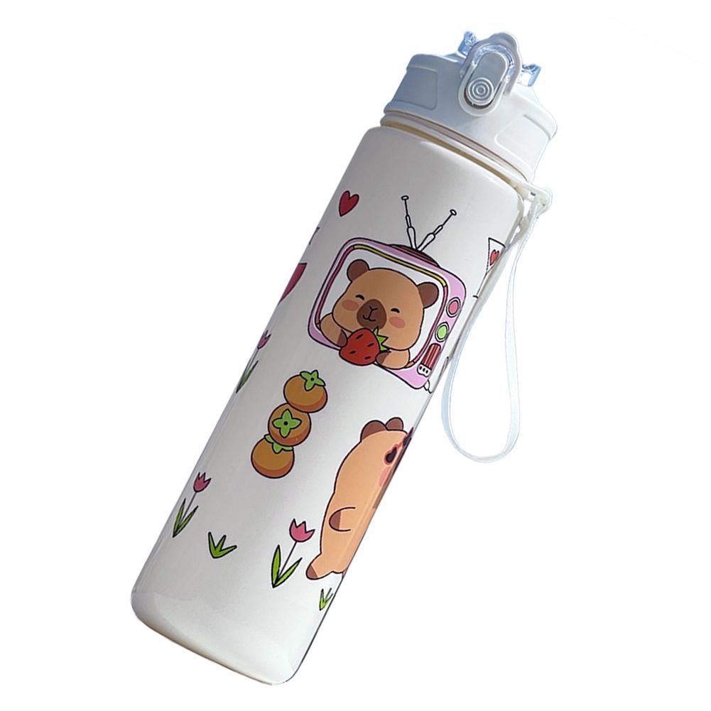 800ml Capybara Cute Water Cup with Straw & Handle Travel Water Cup Large Capacity Kawaii Water Bottle for Outdoor Activities