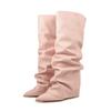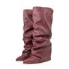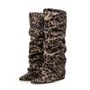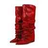Женские высокие сапоги с принтом крокодила, с острым носком, леопардовым принтом, на танкетке, в стиле ретро, слипоны, с голенищем до колена, плиссированные