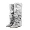 Женские высокие сапоги с принтом крокодила, с острым носком, леопардовым принтом, на танкетке, в стиле ретро, слипоны, с голенищем до колена, плиссированные — купить товар онлайн с бесплатной доставкой по всему миру!