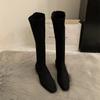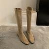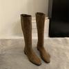 Зимние винтажные облегающие женские сапоги до колена, дизайнерские туфли на толстом каблуке, современные длинные боты для женщин
