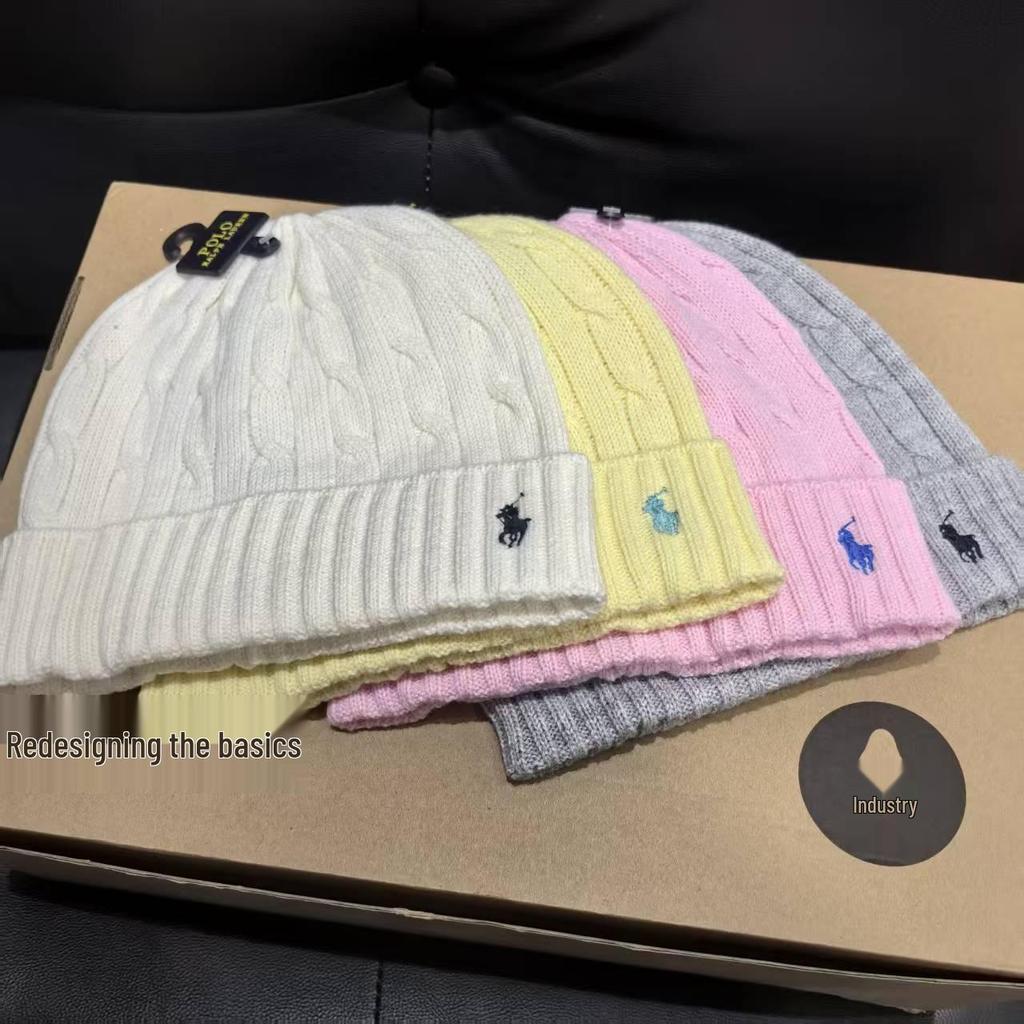 Унисекс шерстяная шапка-бини с вышивкой логотипа RL - Теплая, Толстая, Осень/Зима