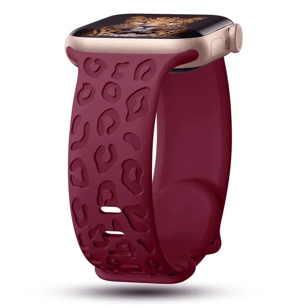 Ремешки с гравировкой леопарда для Apple Watch Band 45 мм 44 мм 49 мм 41 мм 46 40 мм Correa Bracelet Iwatch Series 10 9 8 7 SE 6 5 3 Ultra 2