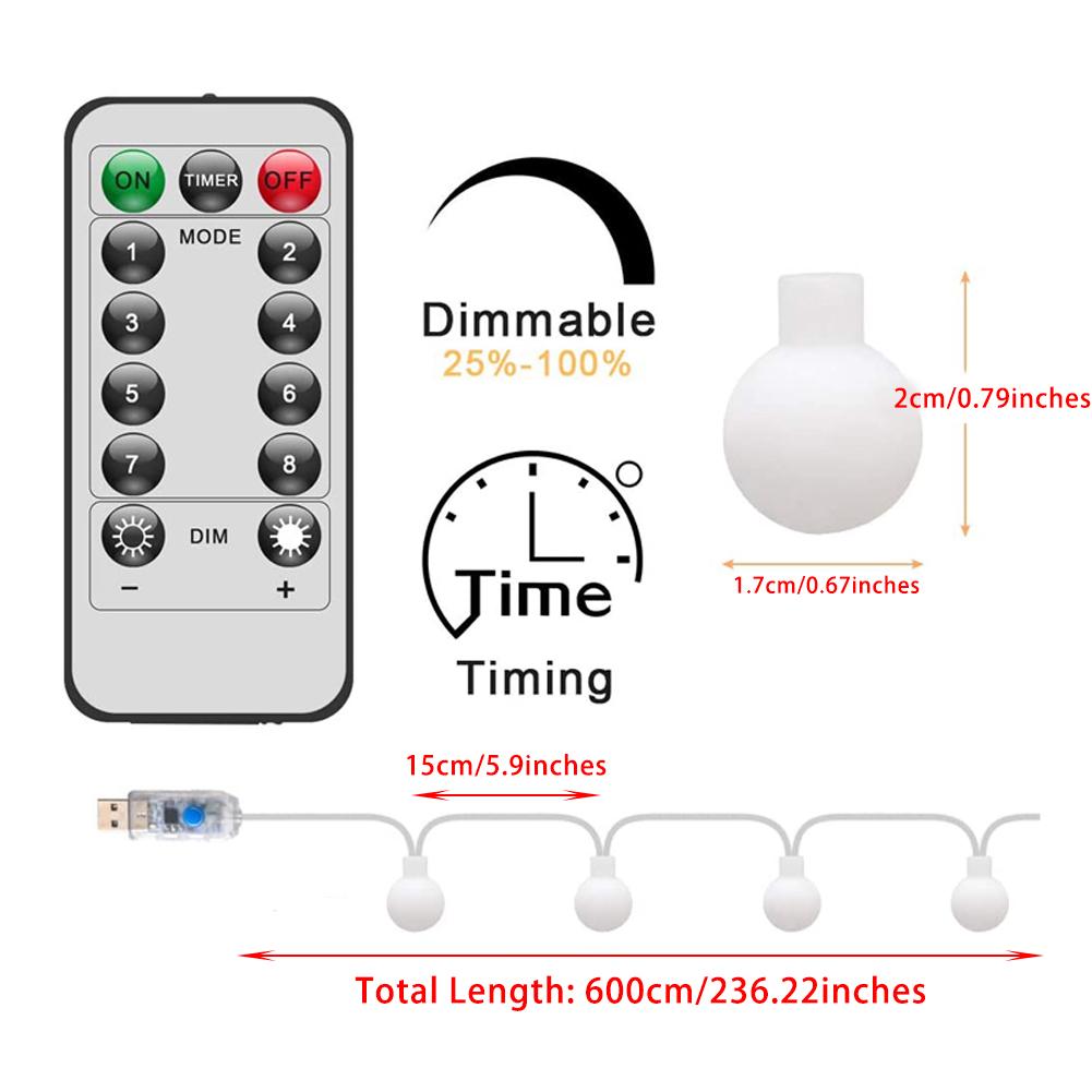 1 шт. Уличные гирлянды-шары, 6 м 40 светодиодных сказочных гирлянд, настенный декор, питание от USB, 8 режимов, рождественские сказочные огни с пультом дистанционного управления