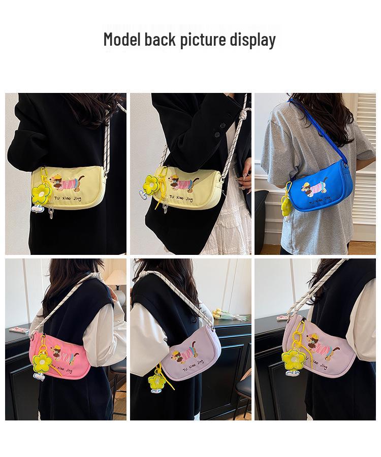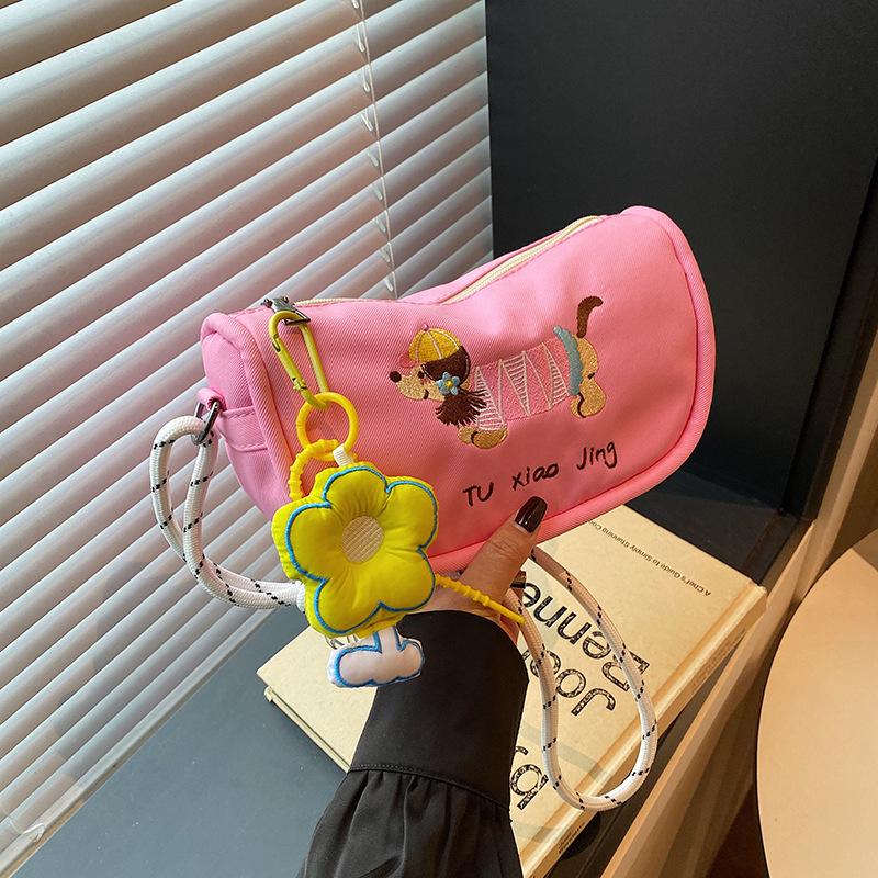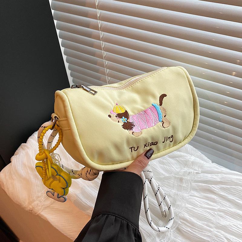 2025 Новая Милая Мультяшная Вышивка Собаки Сумка-пельмень на плечо - Легкая, Красочная, Универсальная