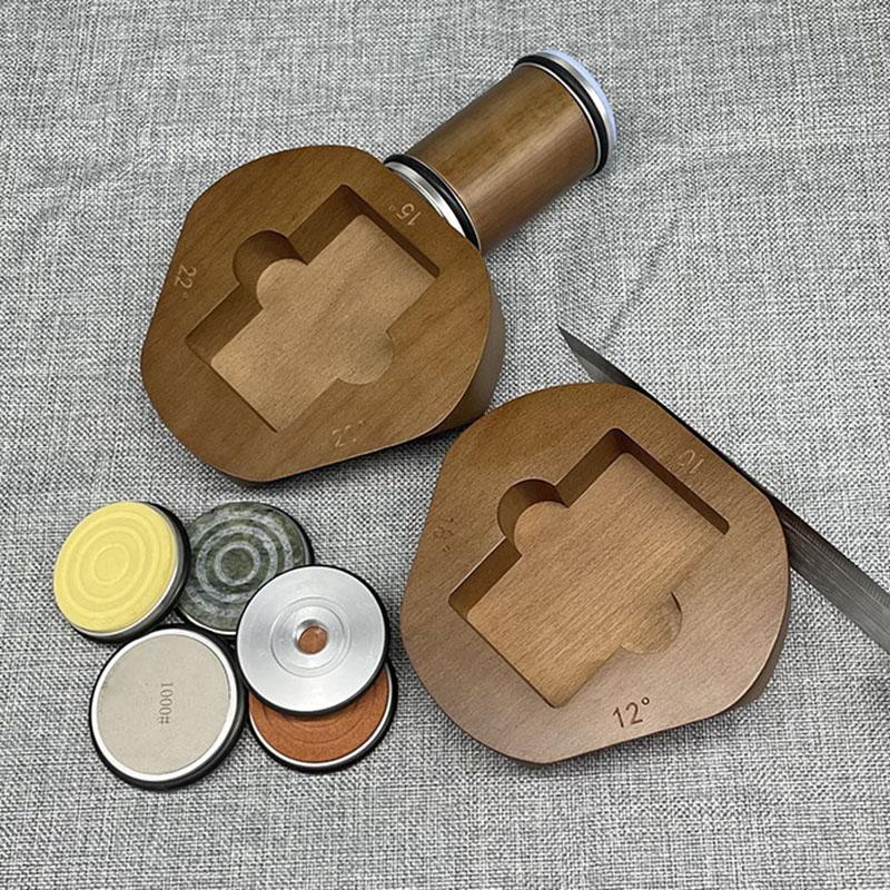 10/12/15/18/20/22° Роликовая точилка для ножей Деревянная основа Кухонная система заточки Алмазный камень 240/1000# Профессиональные точилки