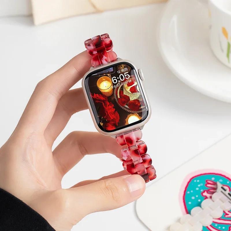 Смола Ремешок Для apple watch Ultra 49мм серии 9-8-7 41мм 45мм correa 44мм 40мм Тонкий ледник Ссылочный браслет iwatch 6 5 4 SE Ремешок
