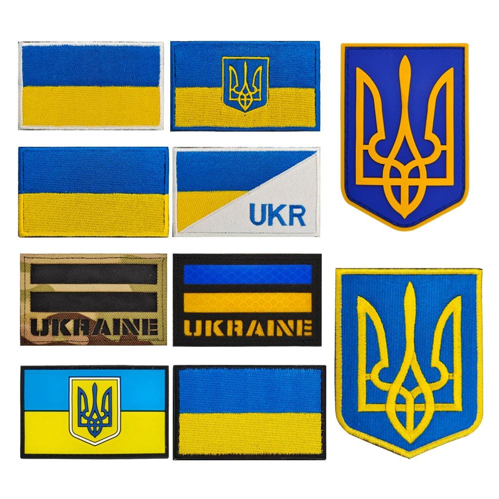 Украина, золотой трезубец сине-желтый флаг вышитая велкро нашивка нашивка на рюкзак тканевая наклейка ПВХ резиновая нашивка