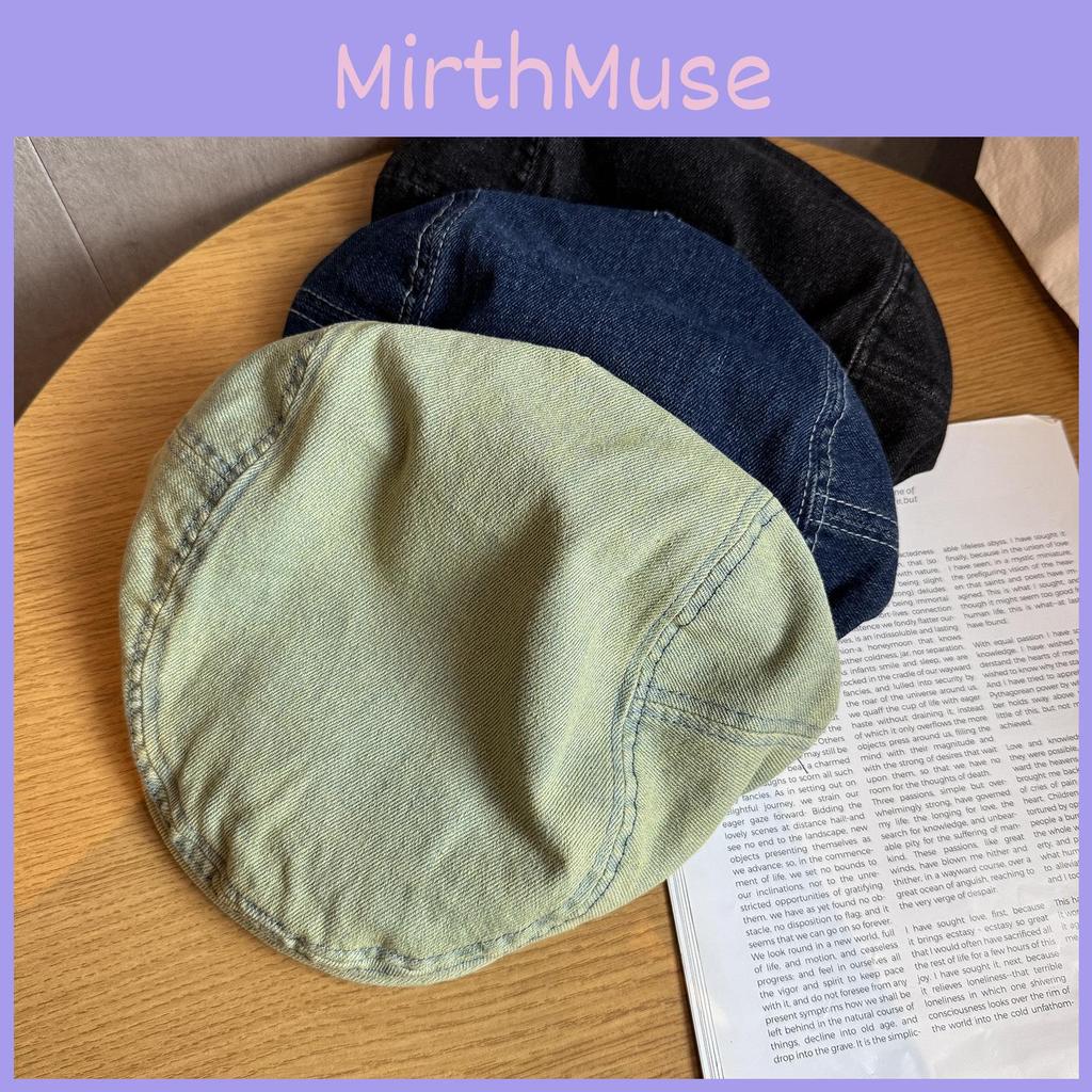 Ретро Цвет Однотонная Джинсовая Кепка Газетчика Винтажная Стирка Солнцезащитная Уличный Стиль Мода