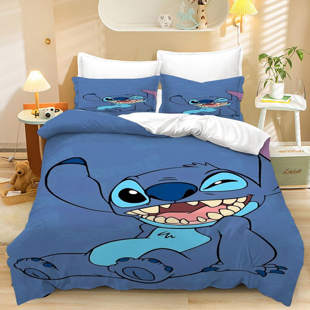 Домашний текстиль Комплект из трех предметов Цифровая печать Синий Мультяшный Стеганое одеяло Наволочка Постельное белье
