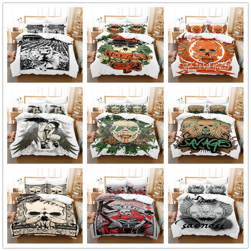 Vintage Pop Goth Reaper Skull Punk Rock Bedding Digital Printing Polyester Cotton Three-Piece Set — купить товар онлайн с бесплатной доставкой по всему миру!