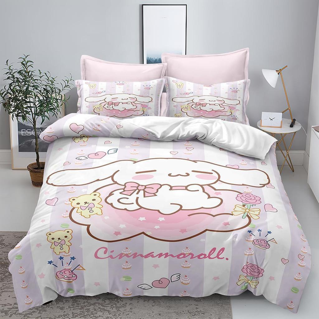 Home Textile Three-Piece Big-Eared Dog Cartoon Digital Printing Quilt Pillowcase Bedding