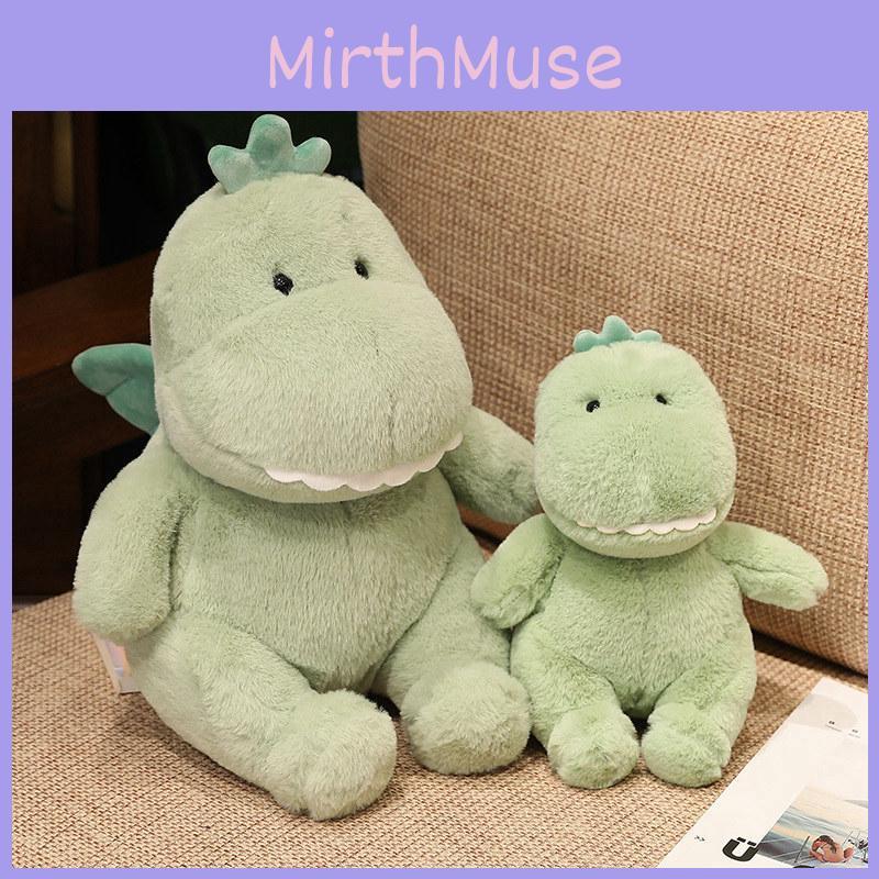 Сидящий Милый Плюшевый Мультяшный Динозавр Мальчик Спит в Кровати в Сопровождении Куклы в Подарок