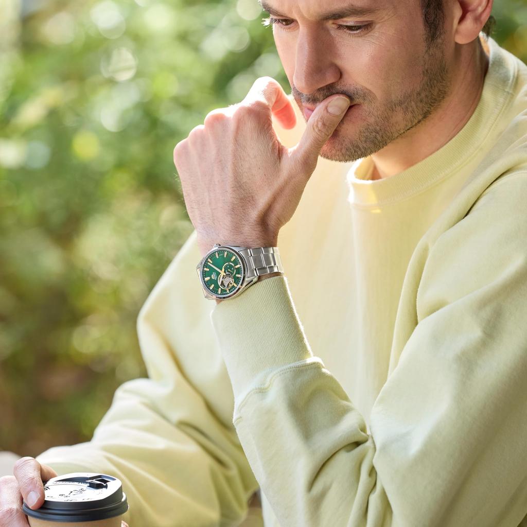 Orient Современные автоматические часы с открытым сердцем с японской гарантией RN-AR0008E Мужской полускелетонный дизайн, зеленый, от производителя