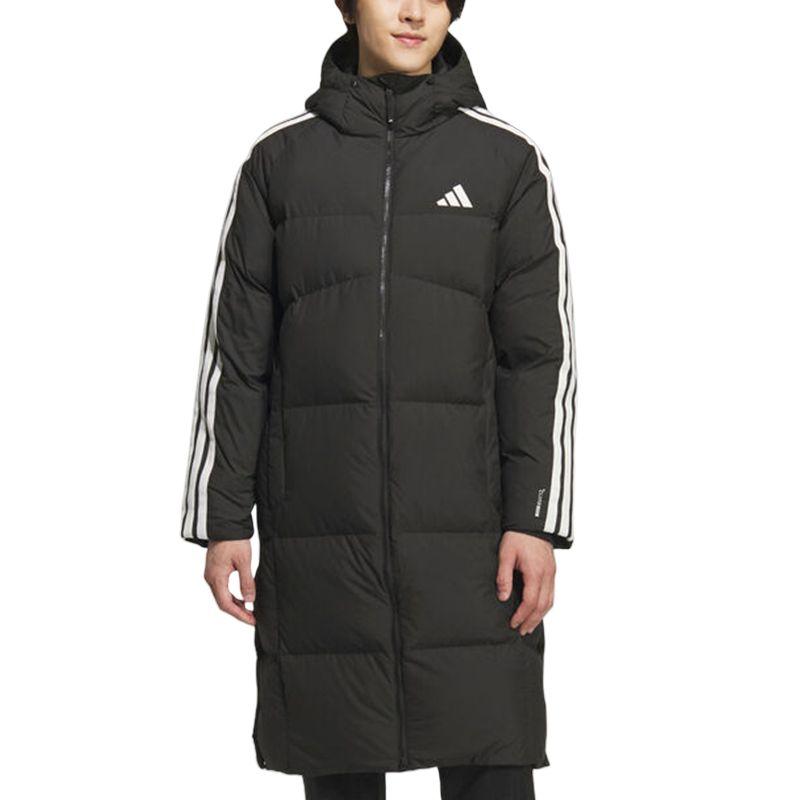 Adidas Пуховик 3-Stripes 3S L Теплый Ветрозащитный Водоотталкивающий Пух Утки В полоску На молнии С капюшоном Длинное пальто Мужская верхняя одежда Черный KC2498