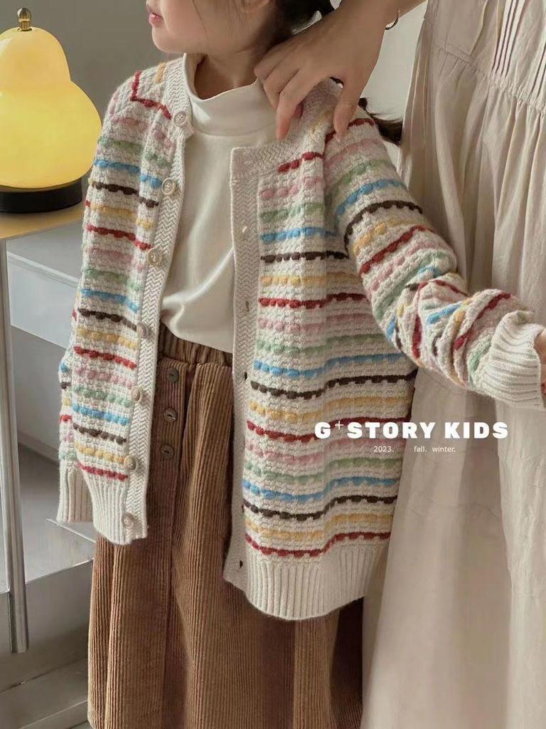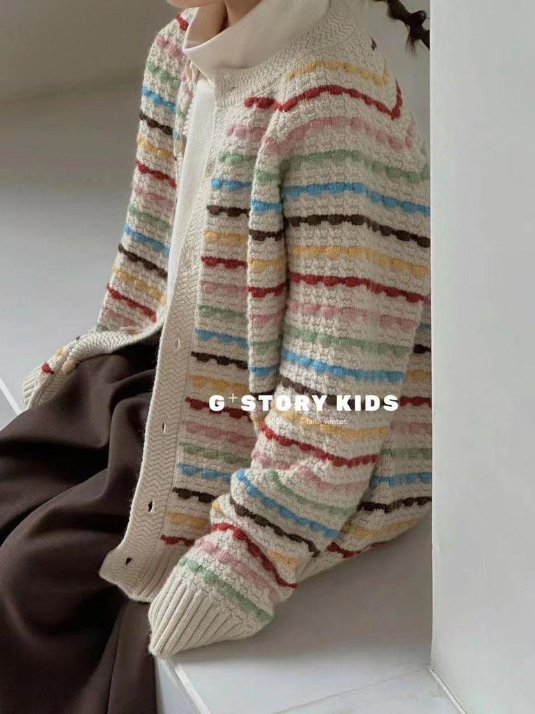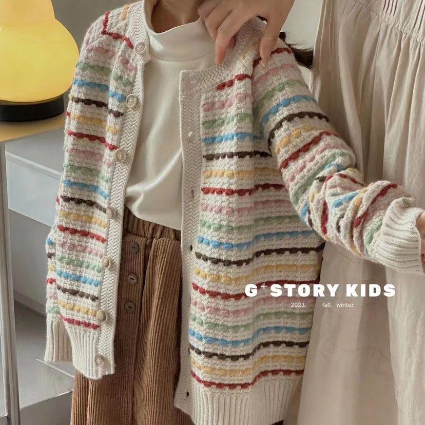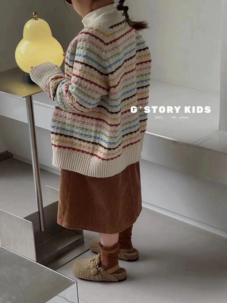 Детский яркий полосатый вязаный свитер для девочек - модный топ 2025 для весны, осени и зимы