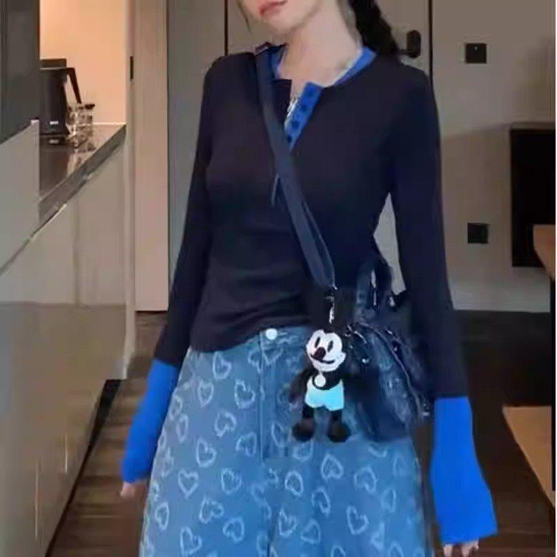 Женская хлопковая футболка с длинным рукавом в стиле ретро, с цветными блоками - 2025, большого размера, облегающий базовый слой для ранней осени