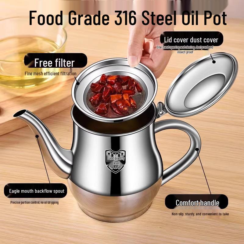 Большой вместимости горшок для хранения масла из нержавеющей стали с фильтром
