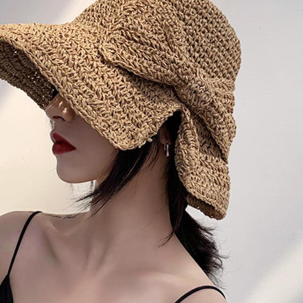 Женская складная шляпа от солнца из японской соломы с бантом - Повседневная летняя шляпа-ведро/рыбацкая для путешествий и защиты от солнца