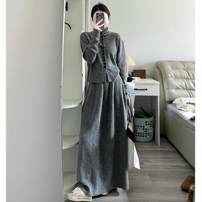 Однотонный свитер с высоким воротником и юбка миди, комплект из двух предметов - женский осенне-зимний кардиган свободного кроя в корейском стиле.