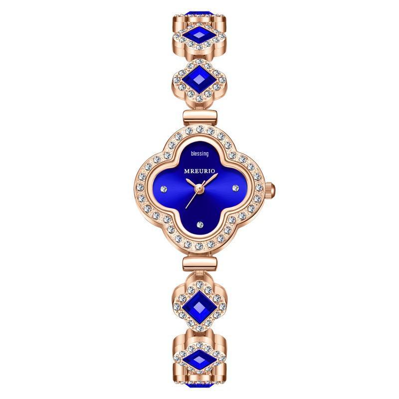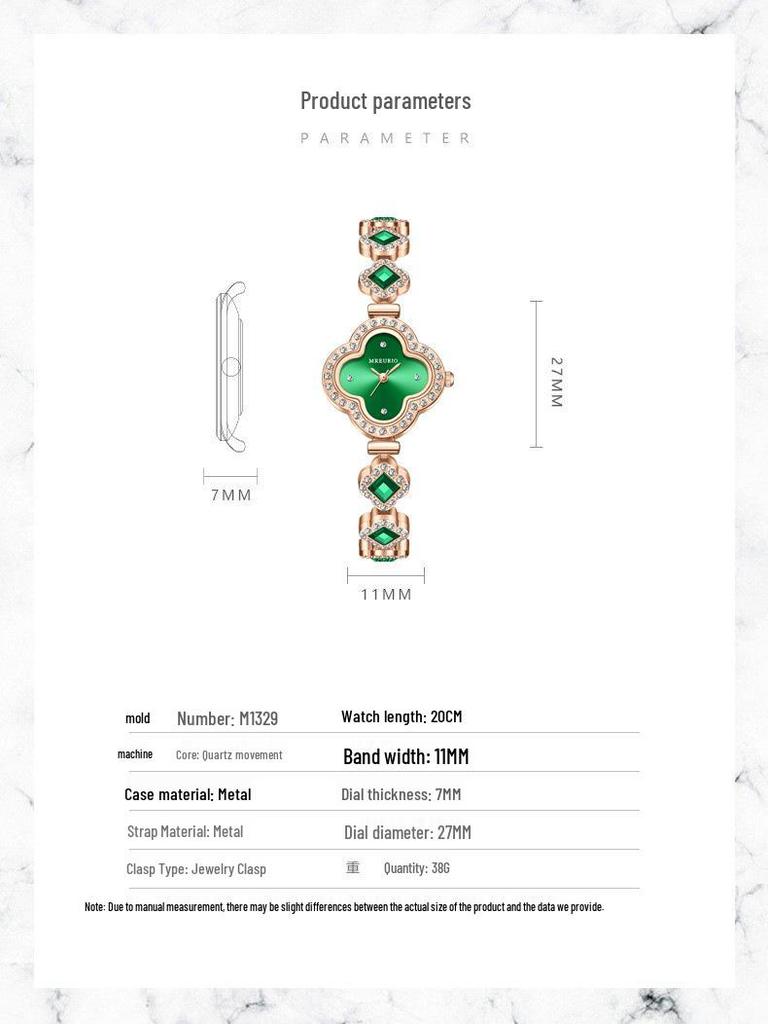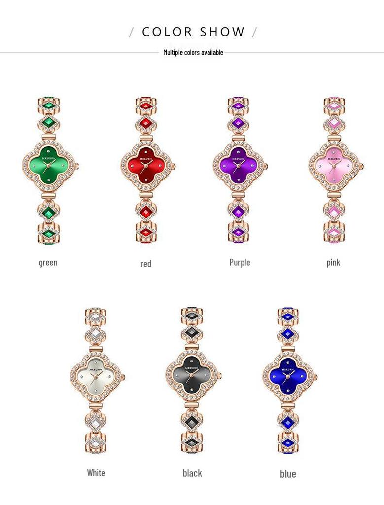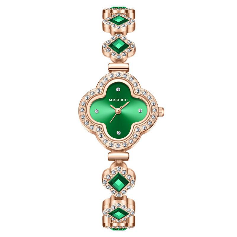Популярный изумрудный браслет-клевер с четырьмя лепестками, кварцевые часы для женщин