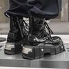 Ботинки мартин мужские высокие в британском стиле на толстой подошве с увеличением роста из лакированной кожи черные ботинки-локомотивы с круглым носком и боковой молнией панк-ботинки мужские