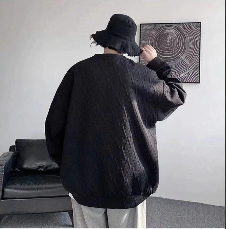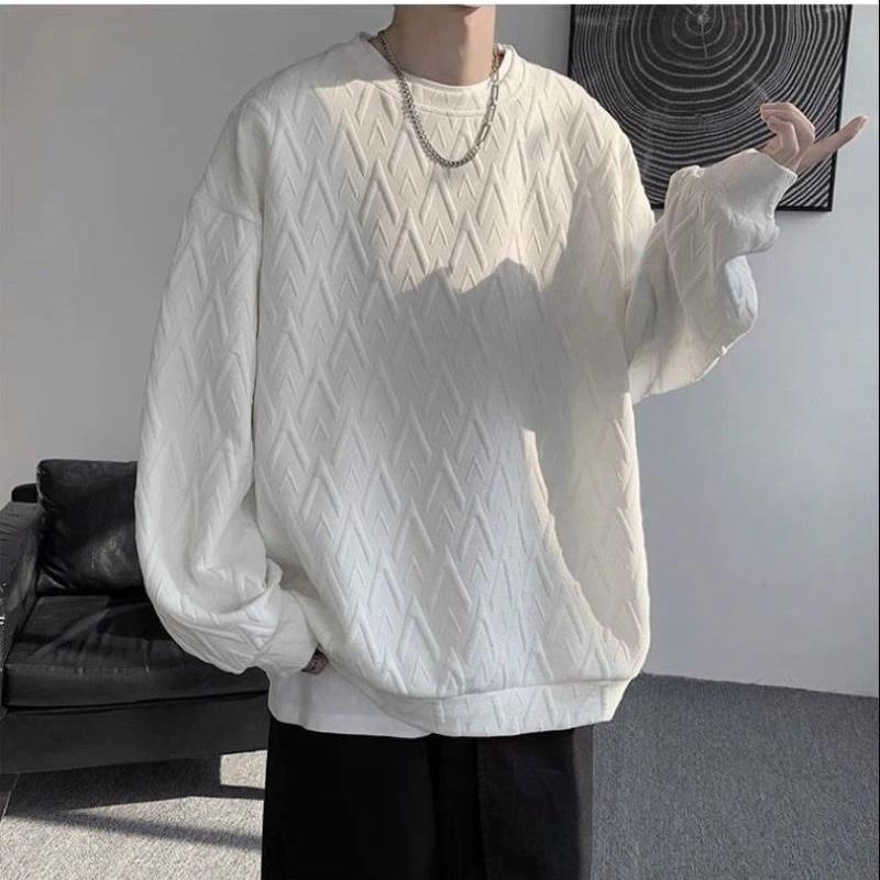 Дизайнерский жаккардовый свитер с круглым вырезом и бархатной подкладкой для мужчин, осенне-зимний, свободного кроя, с длинными рукавами, повседневная базовая футболка