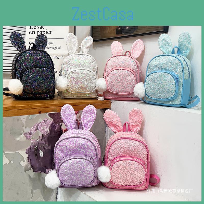Милый рюкзак с кроличьими ушками с пайетками, материал ПУ, подходит для детской повседневной жизни