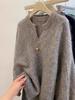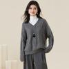 Женский серый свитер крупной вязки с V-образным вырезом из шерсти енота - Весенне-летний стиль