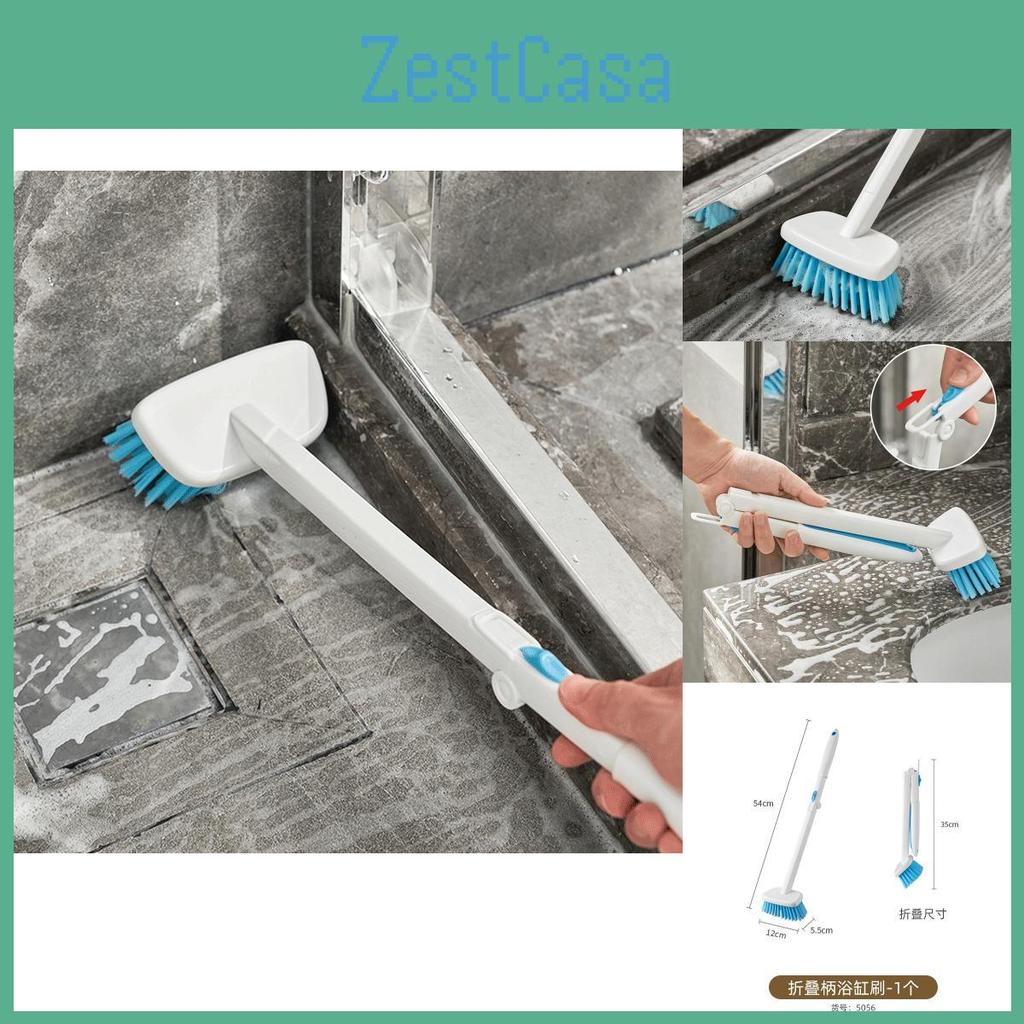 Bristle Hard Bathroom Floor Brush With Foldable Long Handle For Tile Cleaning