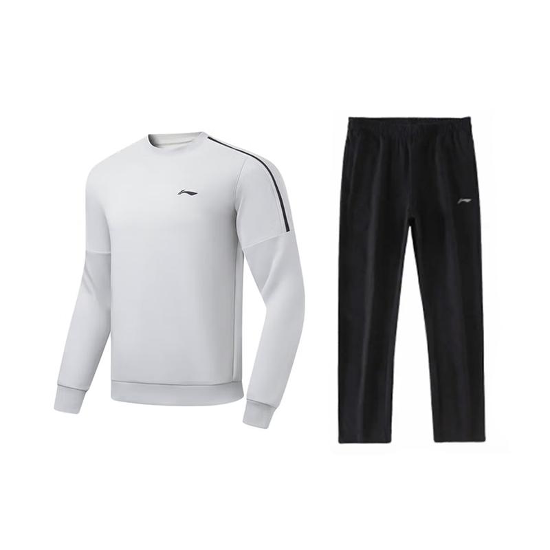 Толстовка Li Ning с принтом логотипа, сшивная, удобная, приятная к коже, дышащая, с круглым вырезом, пуловер, с длинным рукавом, повседневный спортивный комплект AWDU95-2-AKL81-1