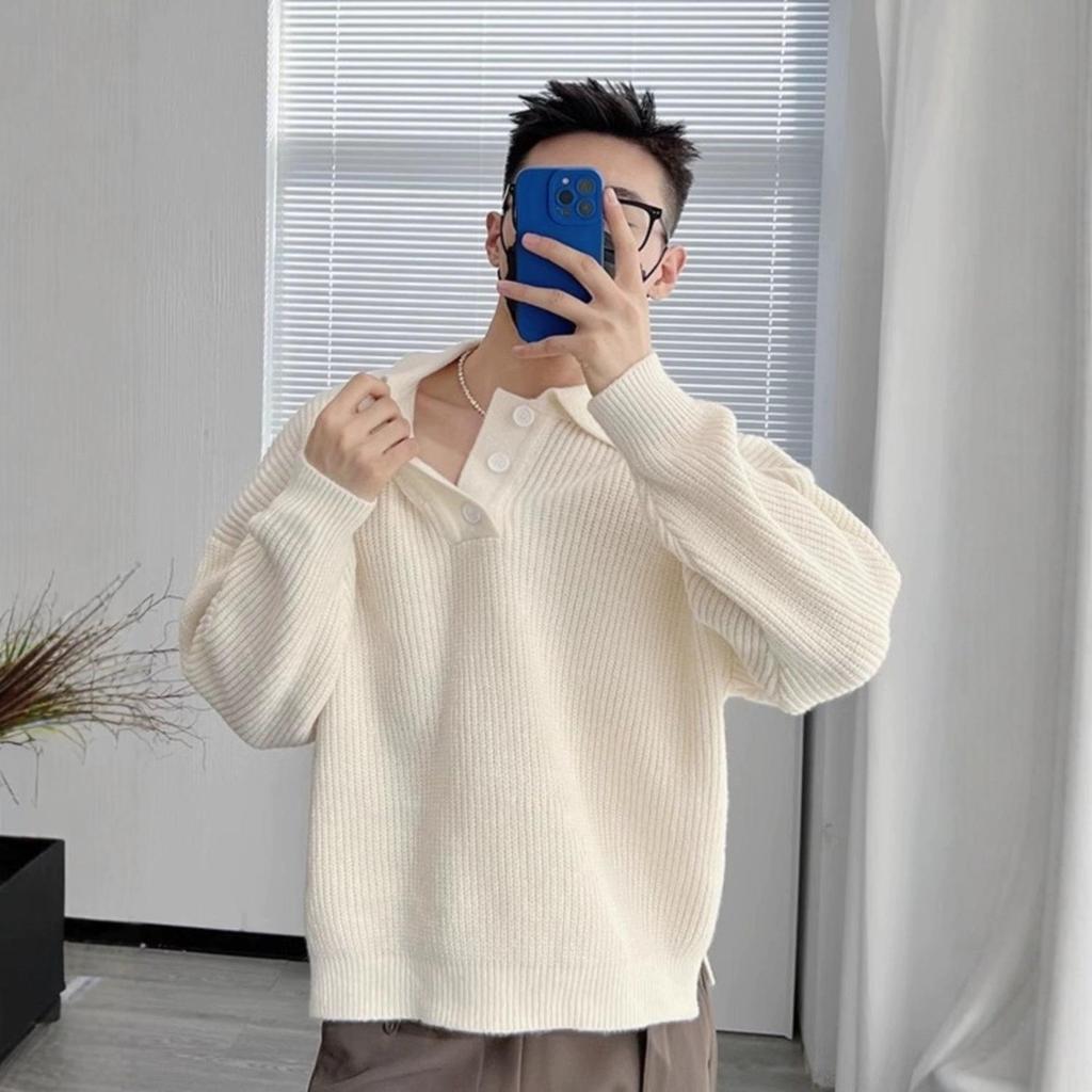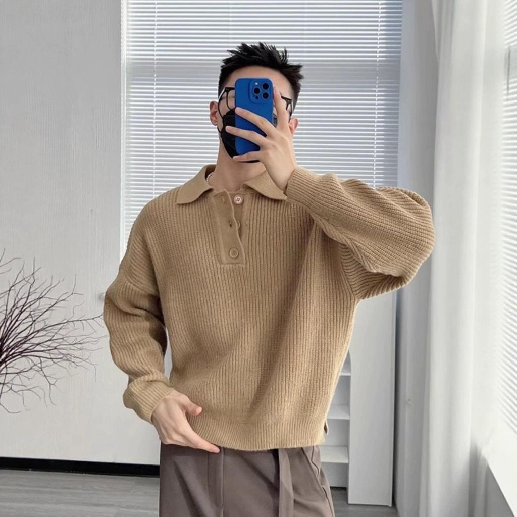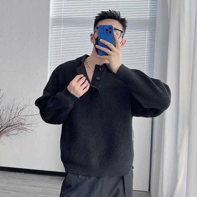 Мужской трикотажный пуловер высокого класса для осени/зимы: Свитер поло свободного кроя