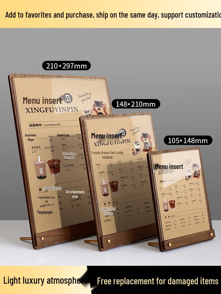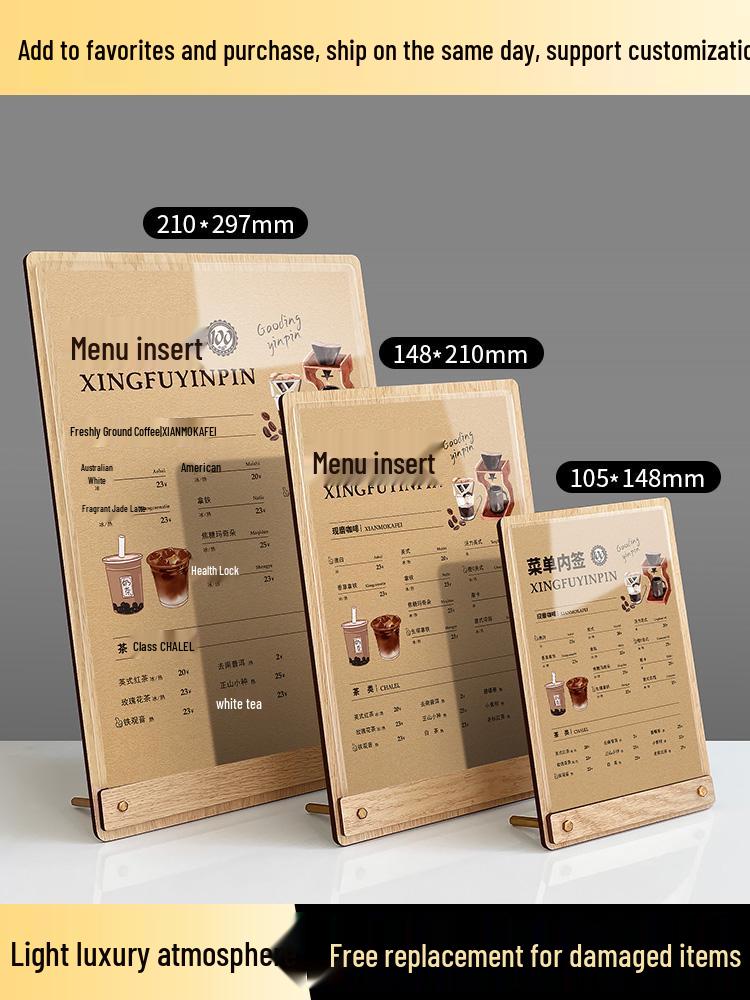 Акриловый вертикальный дисплей для меню формата А4 для кофеен и чайных