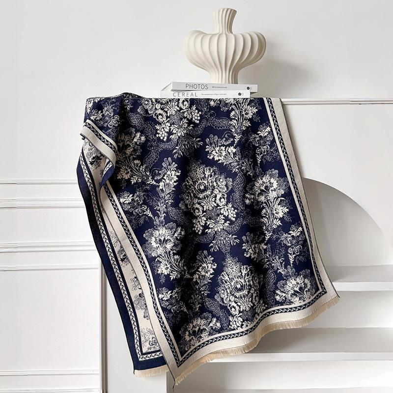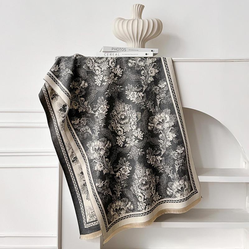 Женский толстый зимний шарф - Элегантный цветочный шарф-обертывание для шеи, Не тянущийся элегантный шарф для холодной погоды, Для формальной и повседневной одежды