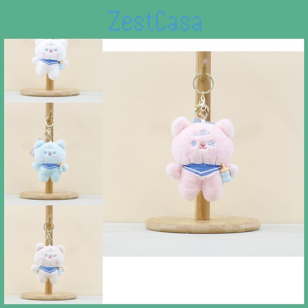 Cute Plush Cartoon Bear Doll Keychain Soft And Cuddly In Light Gray Blue White Pink