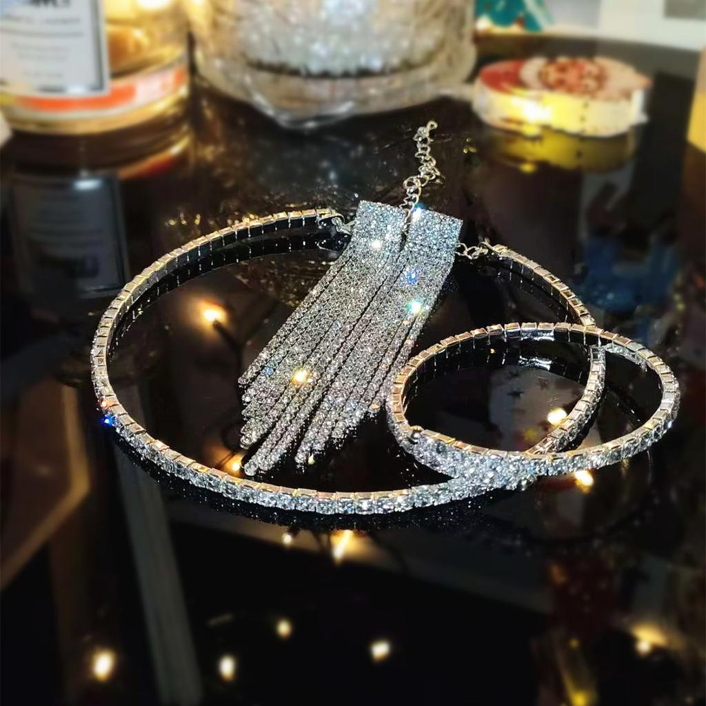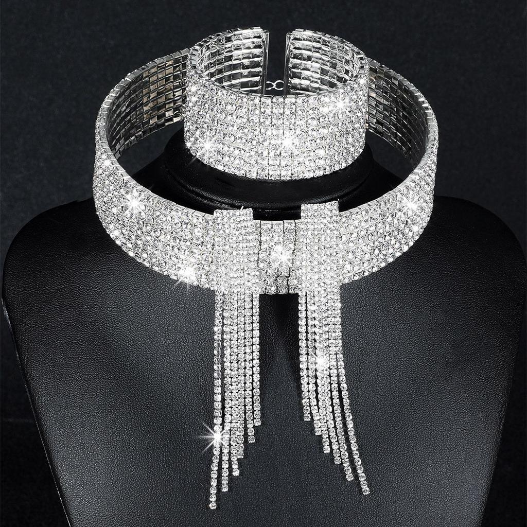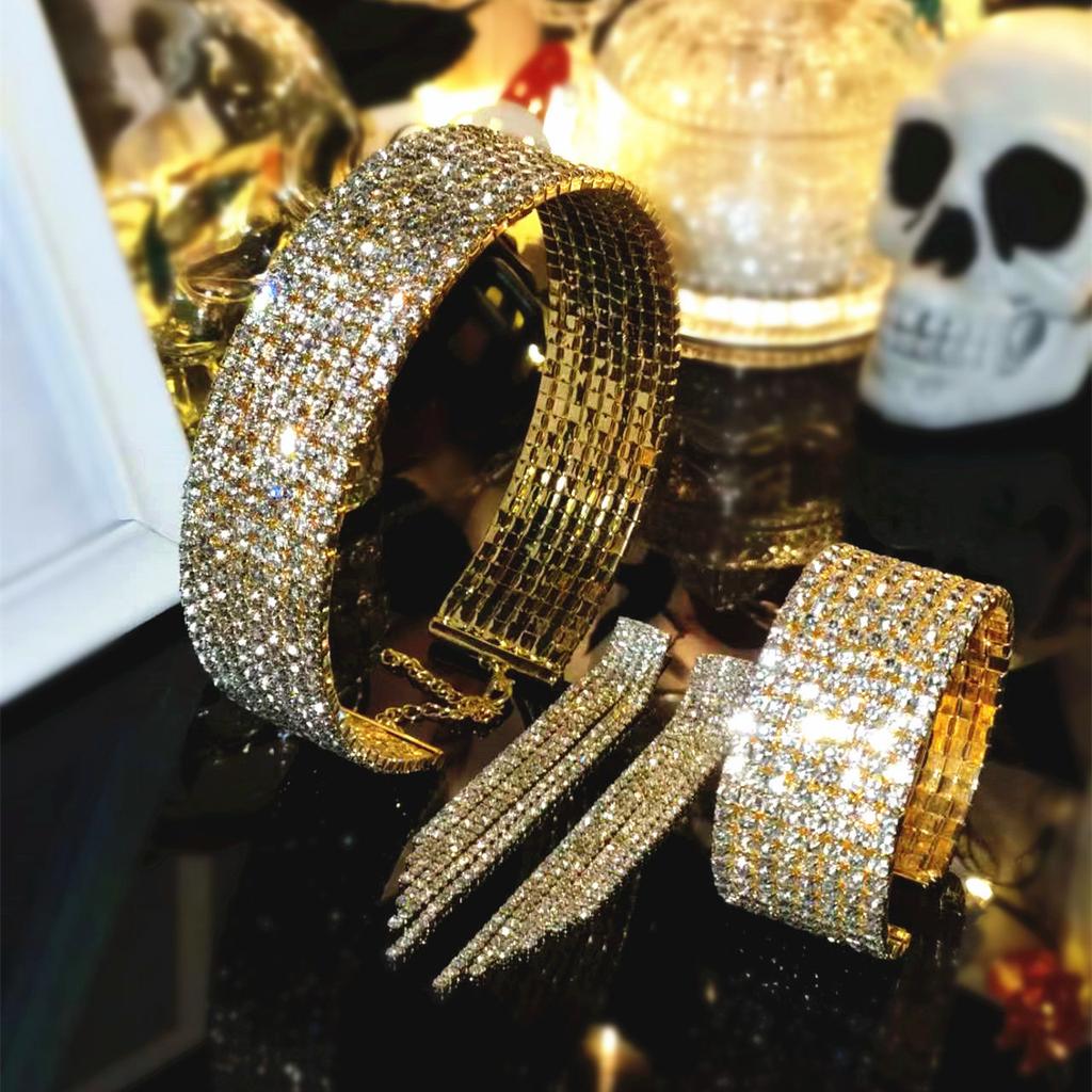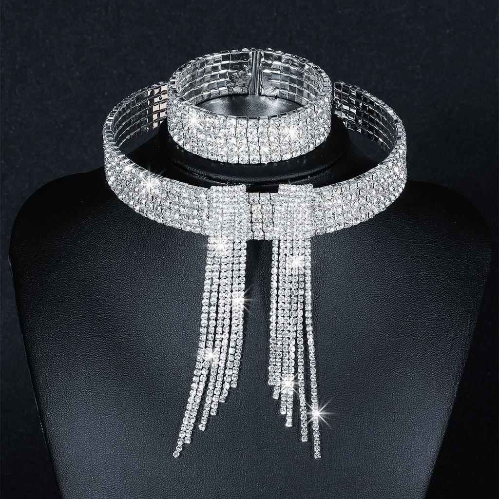 Ожерелье из трех частей, роскошное, высококлассное, многорядное ожерелье со стразами, серьги, браслет, модные свадебные украшения, аксессуары для платья