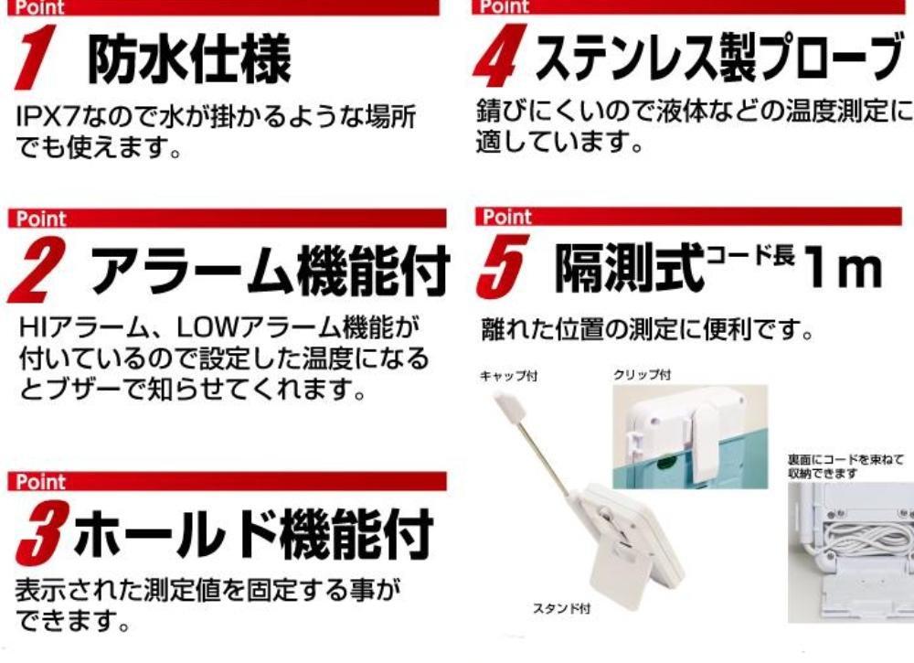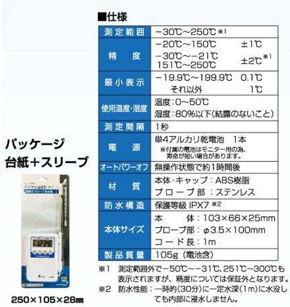Shinwa Sokutei Цифровой термометр Дистанционный 73080 H-1 Зонд, Водонепроницаемый,