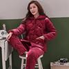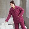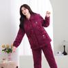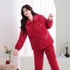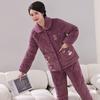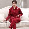 Женская зимняя стеганая пижама из кораллового флиса - Теплый фланелевый комплект для дома для мам среднего и пожилого возраста