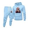 Мужской худи с принтом и спортивные штаны, повседневный спортивный костюм
