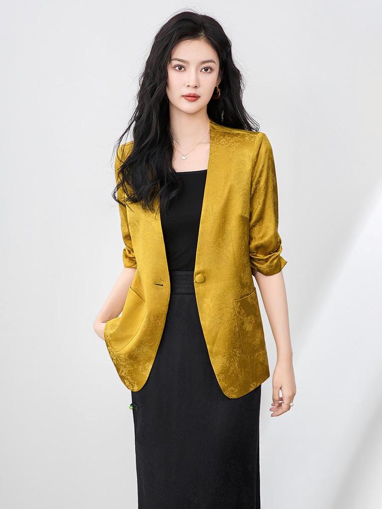 Этот потрясающий блейзер излучает элегантность своим роскошным дизайном, изготовленным из жаккардового вискозного льна, который предлагает изысканную текстуру и ощущение.. Рукава с драпировкой добавляют современный штрих, идеально дополняя классический V-образный вырез.. Деликатные гипюровые кружевные акценты подчеркивают его изысканный вид, делая его идеальным выбором для придания изюминки любому ансамблю.. Будь то наряд для официального мероприятия или шикарный слой для вашего повседневного гардероба, этот блейзер легко сочетает в себе стиль и комфорт.